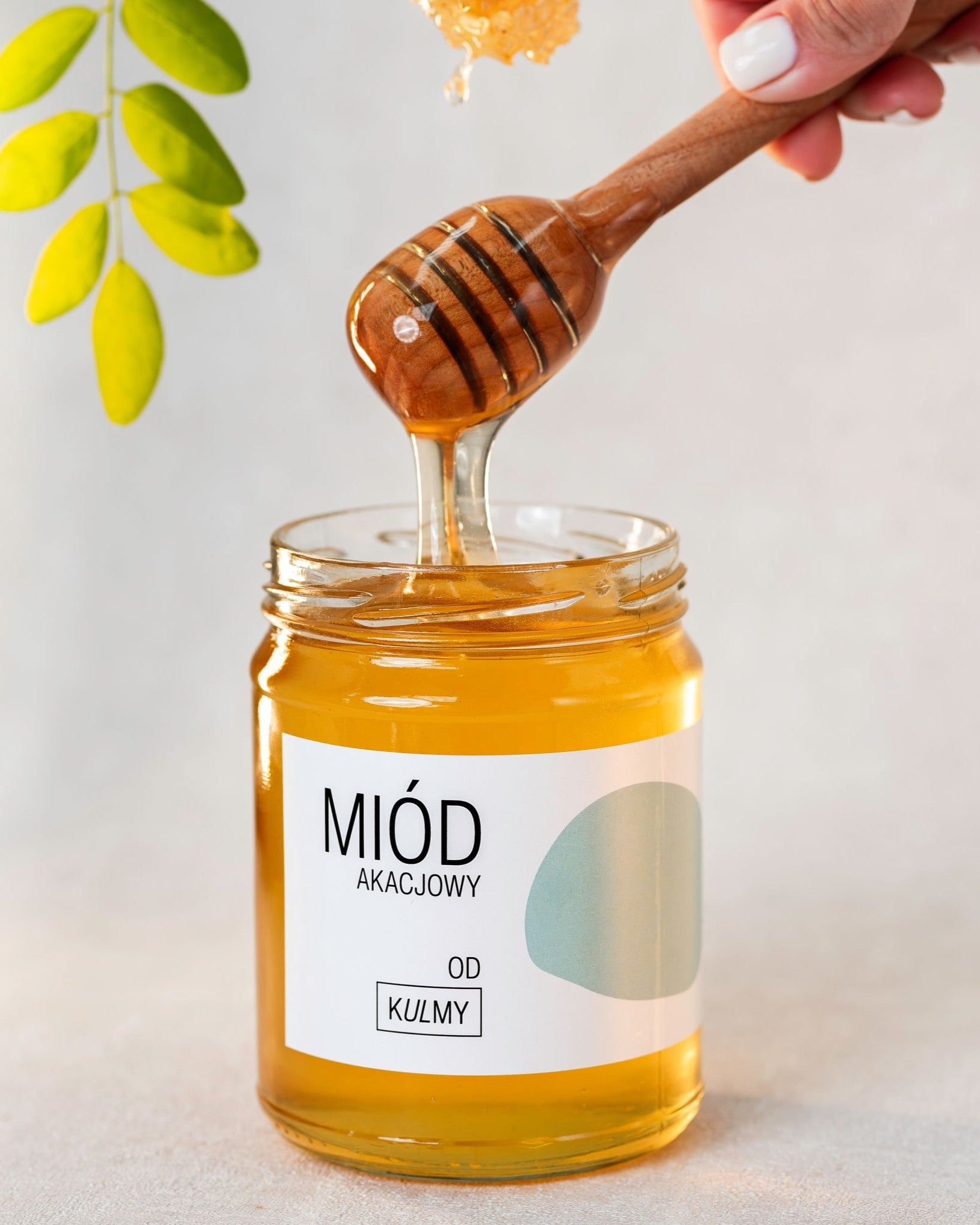MIÓD AKACJOWY OD KULMY ŚWIEŻY TEGOROCZNY ROZLEW – LIMITOWANY! PIERWSZA SPECJALNA PARTIA! Wspaniały miód akacjowy z najnowszego miodobrania! Jak rozpoznać dobry miód akacjowy? Jest długo lejący, bardzo przezroczysty, jasny niemal słomkowy. Nasz idealnie wpasowuje się te standardy. To co jednak najbardziej nas zaskoczyło, to jego smak. Aksamitny, łagodny, zupełnie jakbyśmy nie jedli miód, a jakiś cudowny nektar. Już rozumiemy skąd tyle zachwytów nad miodem akacjowym! DLA KOGO MIÓD AKACJOWY Osób z wrażliwością na inne rodzaje miodu – miód ten jest łagodny w smaku i ma delikatną konsystencję, dlatego jest często preferowany przez osoby, które nie lubią intensywnego smaku innych rodzajów miodu. Osób z problemami układu pokarmowego – ze względu na swoje łagodzące właściwości, może być lepiej tolerowany przez osoby z wrażliwym żołądkiem, zgagą, niestrawnością lub innymi problemami trawiennymi. Osób z infekcjami dróg oddechowych – tradycyjnie stosowany jako naturalny środek na kaszel, ból gardła i infekcje dróg oddechowych. Może być szczególnie korzystny dla osób cierpiących na suchy kaszel lub podrażnione gardło. Osób poszukujących naturalnych środków na podniesienie odporności – dzięki swojemu bogactwu w przeciwutleniacze i substancje wzmacniające układ immunologiczny, miód akacjowy może wspomagać odporność organizmu i pomagać w walce z infekcjami. Osób poszukujących zdrowszej alternatywy dla cukru – Miód akacjowy może być stosowany jako naturalny słodzik, który jest nieco mniej kaloryczny niż tradycyjny cukier. Może być szczególnie atrakcyjny dla osób chcących ograniczyć spożycie rafinowanego cukru.