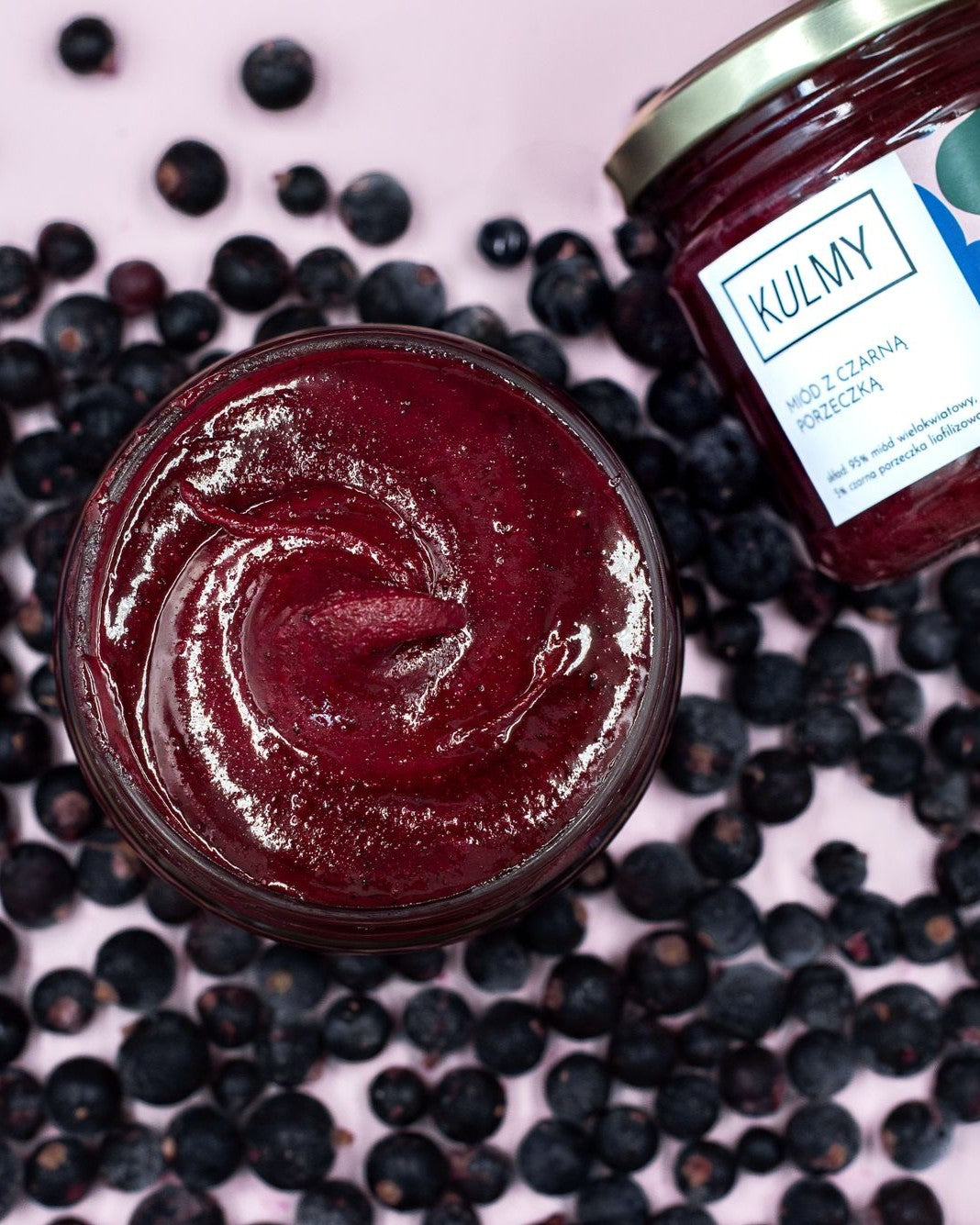 MIÓD Z CZARNĄ PORZECZKĄ OD KULMY Czarne porzeczki, tak jak i maliny, są z nami od dzieciństwa. Zapewne większość z nas jadła je w różnej formie. Ze wszystkich porzeczek (jest jeszcze czerwona i biała), czarna ma największe owoce, o ciemnej, matowej skórce. Naszym zdaniem ma też najbardziej głęboki i wytrawny smak, który idealnie paruje się z miodem. Z tego połączenia wyszedł przepyszny miód z czarną porzeczką. JAK SMAKUJE W smaku miód z czarną porzeczką jest bardzo wyważony, na czym nam zależało. Kwaskowe nuty – niezbity dowód na obecność witaminy C, są bardzo delikatne, zdecydowanie jest to smak dla każdego. Jeśli ktoś chciałby przekonać do tego miodu dzieci, to jest duża szansa na sukces! Konsystencję ma miękką, ale raczej zwartą, wypełnioną owocowymi drobinkami (tak, pestki też bywają). Na pewno do spróbowania zachęca piękny głęboki kolor, jak w sorbecie porzeczkowym. DLA KOGO To jest nasz pewniak – zrównoważony smak, miodowość i wyraźny smak owocu. Spokojnie można wybrać go na prezent, ale też obowiązkowa pozycja w pochmurne dni, gdy szukamy energii.